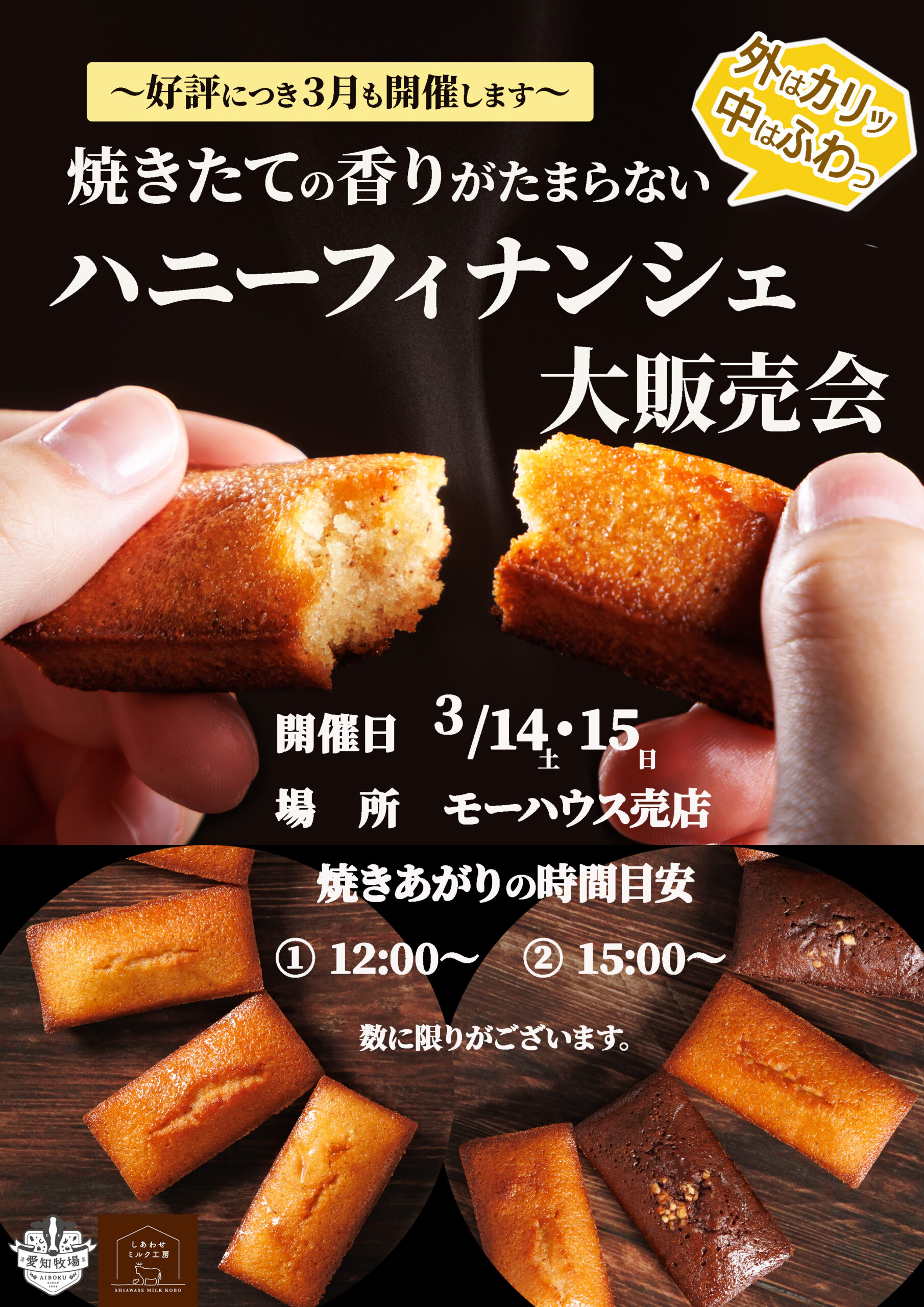 当日オーブンで焼いたフィナンシェをベストな状態で食べていただきたいので、ぜひモーハウスまでお越しください。